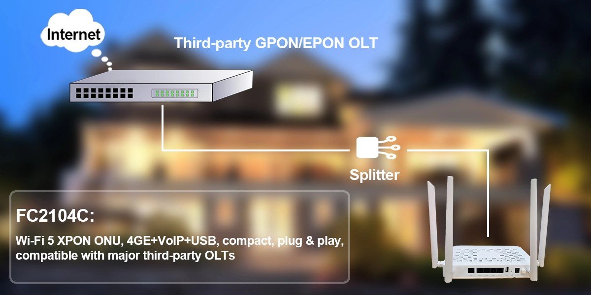 | FC2104C | 4*GE+1*VOIP+1*USB + 1*SC/UPC (SC/APC) WIFI 5 XPON ONU | ||