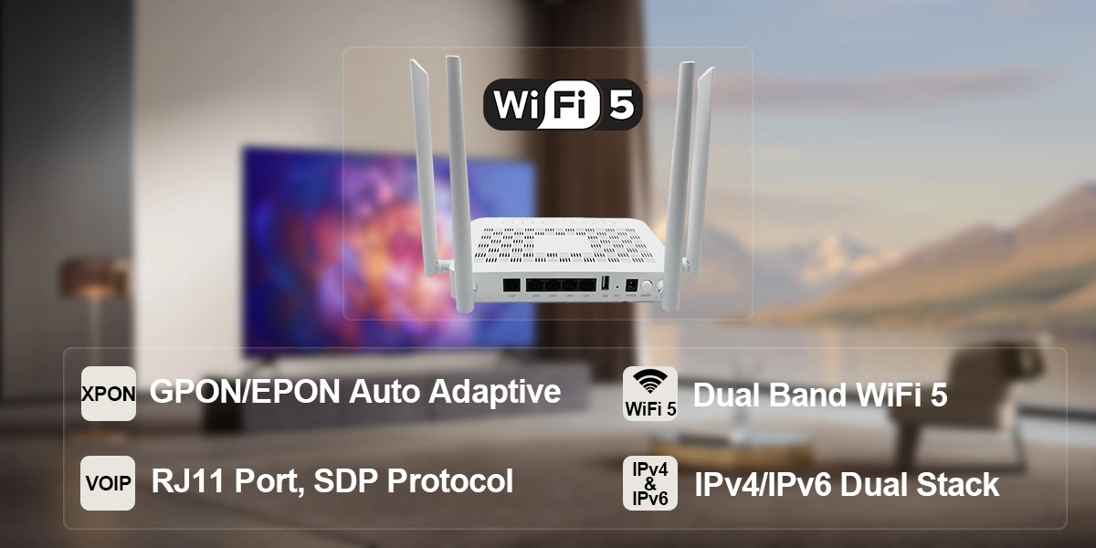 Ø 4*GE+1*VOIP+1*USB +1*SC/UPC (SC/APC) WIFI 5 XPON