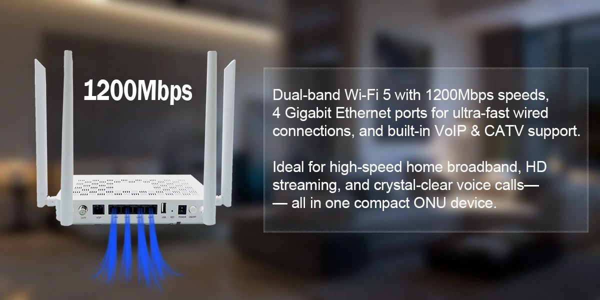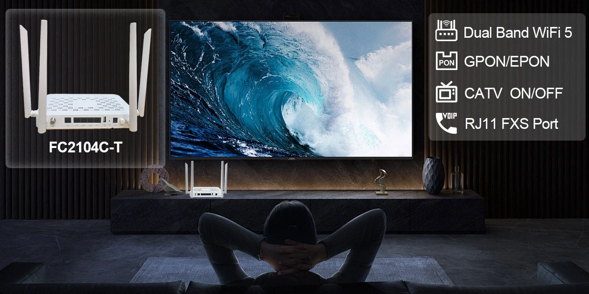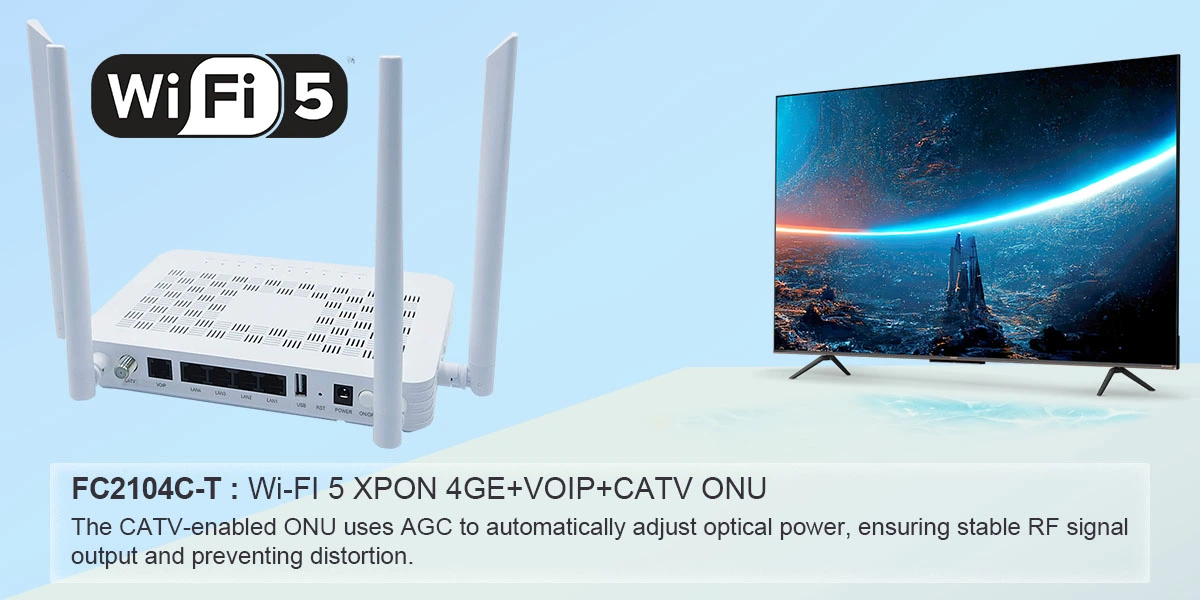 | FC2104C-T | 4*GE+1*VOIP+1*CATV +1*USB + 1*SC/UPC (SC/APC) WIFI 5 XPON ONU | ||