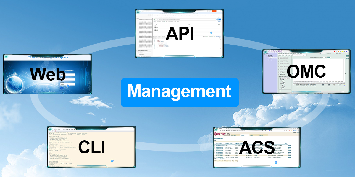 Management | Support OMCI/Web UI/TR069 Telnet/SSH management with CLI commands Dual-system software backup and rollback |