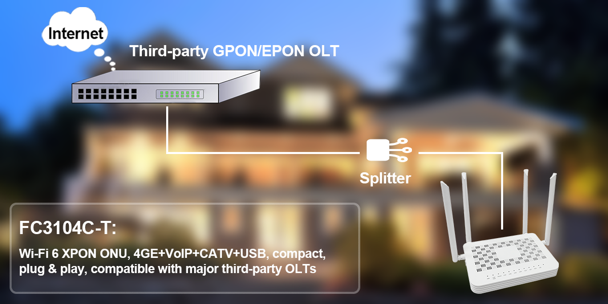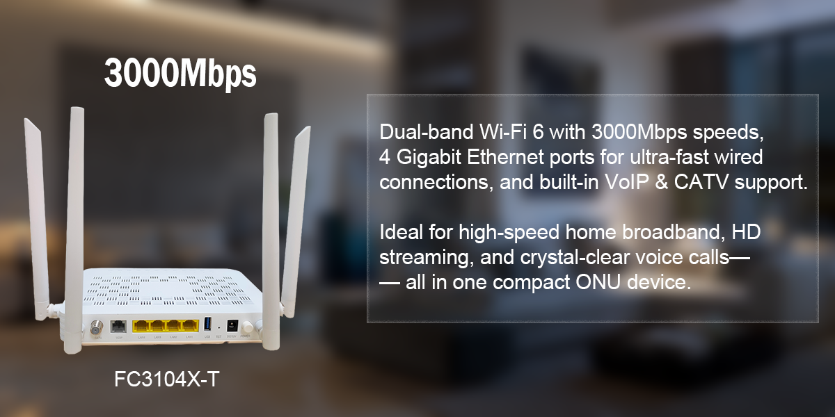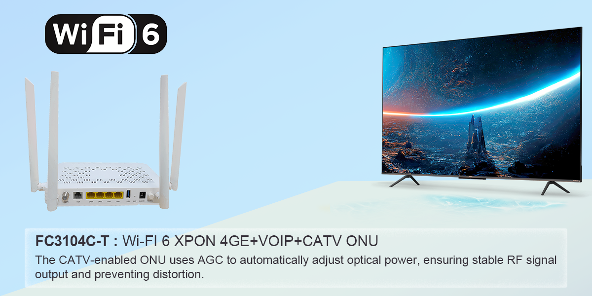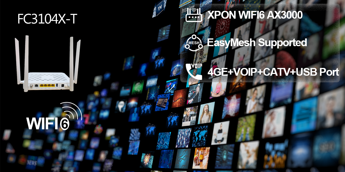 | FC3104X-T | 4GE+VOIP+CATV+USB+SC/UPC (or SC/APC) WIFI6 AX3000 XPON ONU | ||