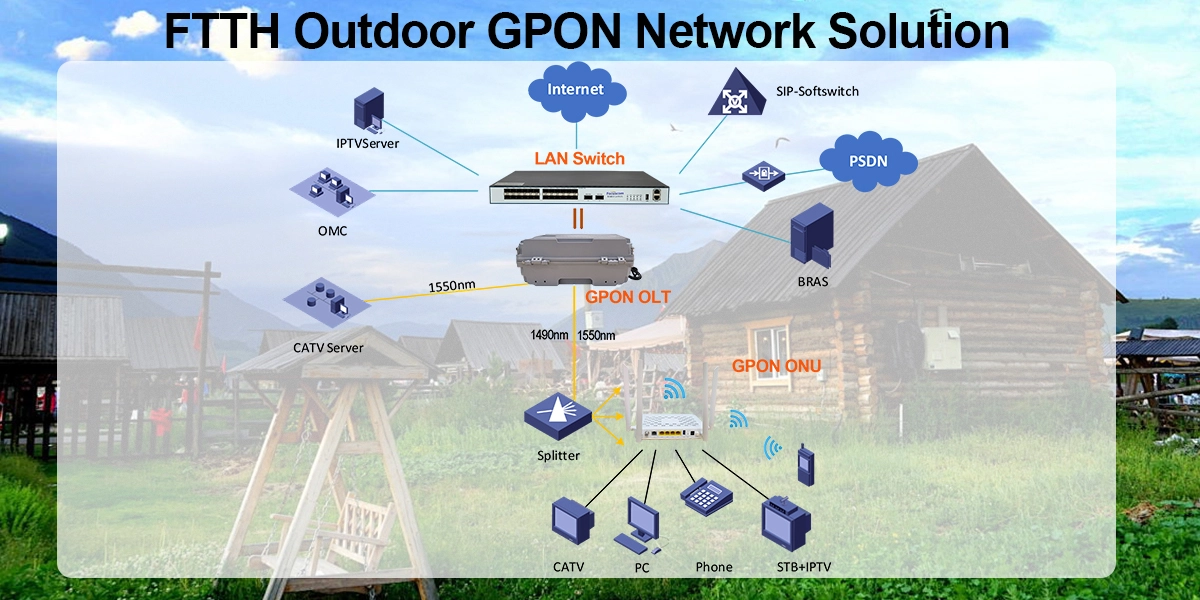 FTTH (Fiber to the Home) can provide higher bandwidth for users to meet different demands of voice, video, and data with fiber as the transmission medium, which will gradually replace copper accessing technology. PON (Passive Optical Network) is recognized as the best FTTH network accessing technology in the industry with no active power devices and passive devices between the local and user sides. Due to its advantages such as high bandwidth, good network stabilization, the convenience of management and maintenance, and low cost, the FTTH solutions become the current preferred network accessing solution with consistent approbation from big operators worldwide.Focuscom specializes in PON technology, and product development has a wide range of product series and can provide users with end-to-end product solutions.