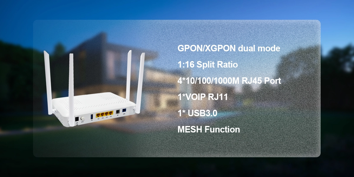 Ø 1*XGPON + 1*GPON port, 4*GE RJ45 ports, 1*USB port, 1*POTS port WIFI6 AX3000 ONU