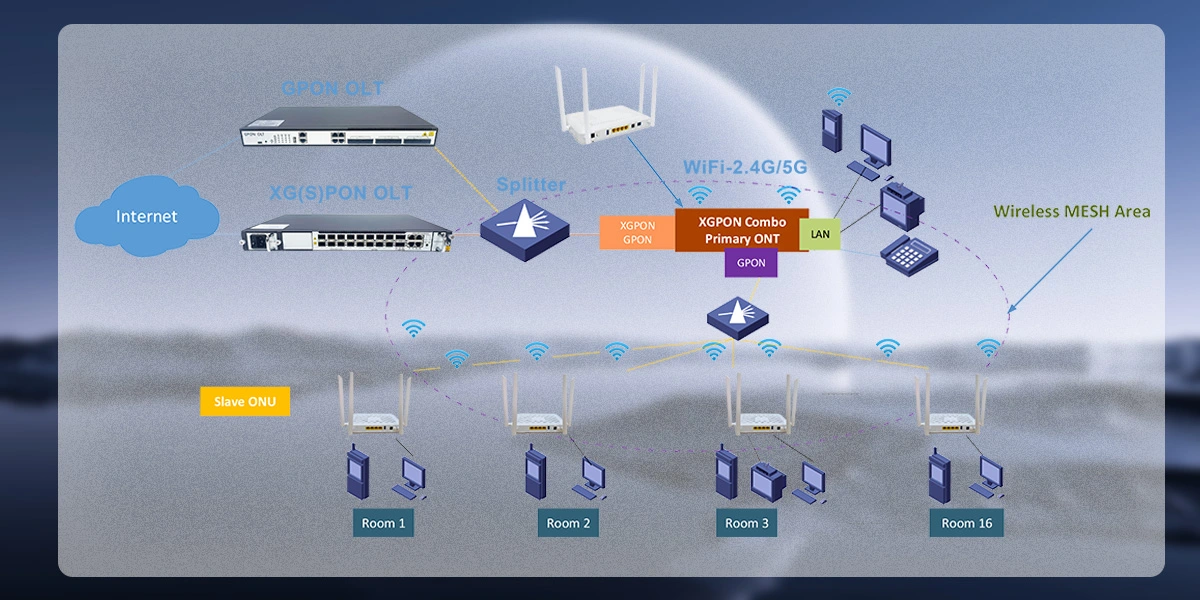 Ø XGPON uplink to connect with ultra broadband access, GPON downlink for FTTR application, support 1:16 split ratio (Max)