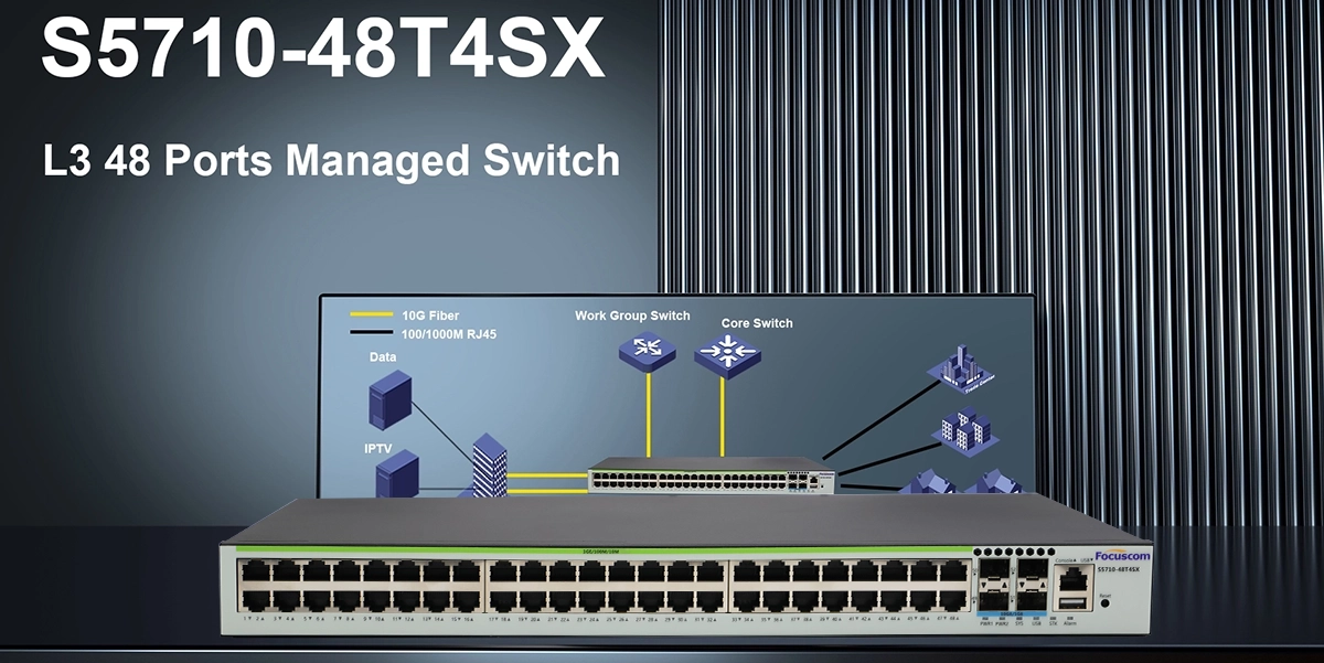 Service convergence is a basic requirement for the development of network integration. Focuscom provides system solutions for enterprise network solution architecture at the three levels of basic platform, service management and value-added services, and builds an end-to-end manageable, full-line speed and full-service enterprise network platform. Through clustering, stacking, QoS, controllable multicast, and security technologies, it provides excellent manageability features to fully meet the comprehensive transmission of voice, data, and video services. It provides a full range of Ethernet switches to tailor network solutions for small and medium-sized enterprises.