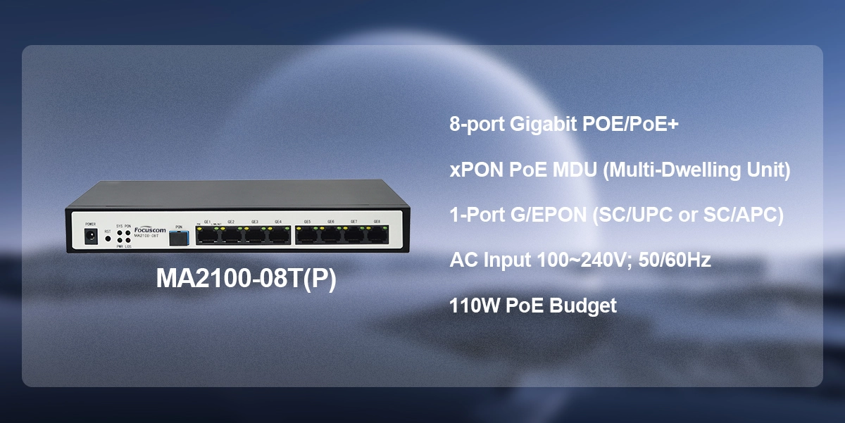 | MA2100-08TP | SC/UPC+8GE (RJ45) POE XPON MDU | ||