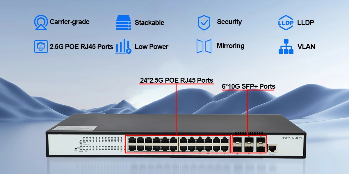 S5720-24MP6X: All-in-One PoE and 2.5G Managed L3 Access Layer Ethernet Switch