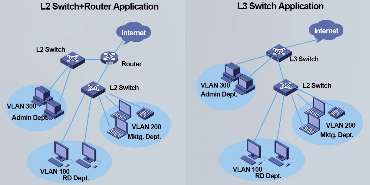 Support IPv4/IPv6 dual protocol stack platform, Support multiple link redundancy and network redundancy protocols such as STP/RSTP/MSTP/ERPS/LACP