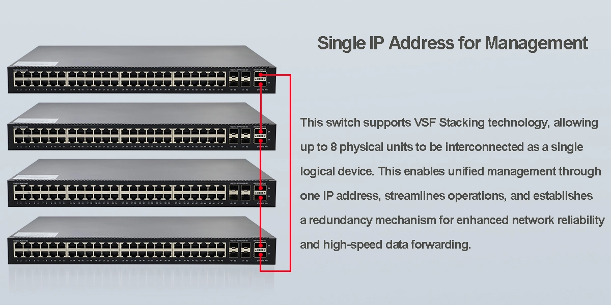Support VSF (Virtual Switch Framework) stacking, allowing multiple devices to be virtualized into a single logical entity