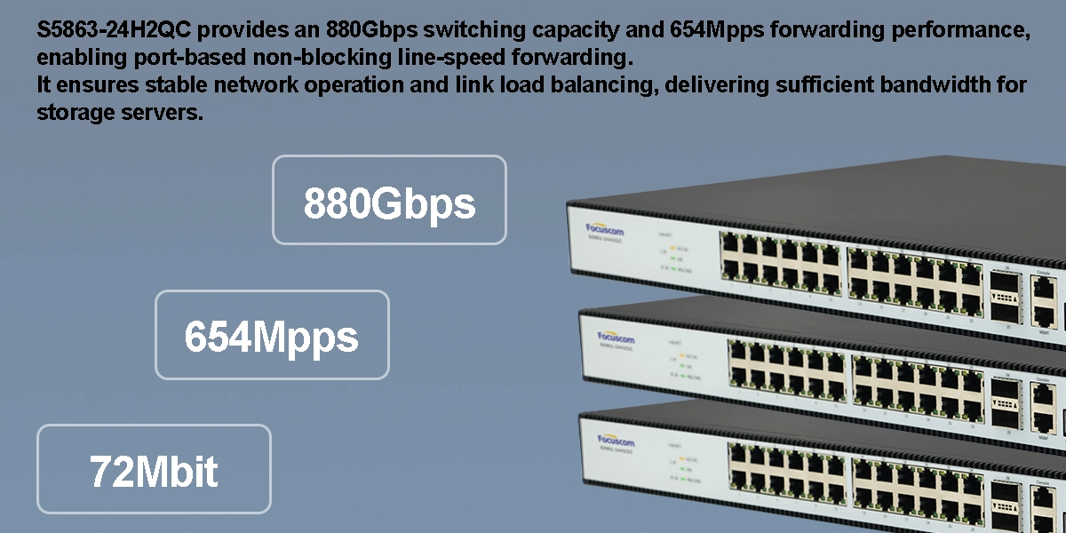 | S5863-24H2QC | 24 * 1G/2.5G/5G/10G Base-T RJ45 Port;2 * 40G QSFP /100G QSFP28 Port |
