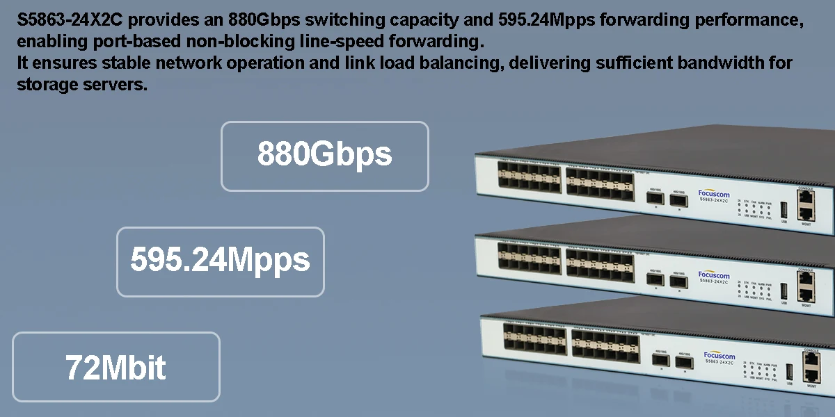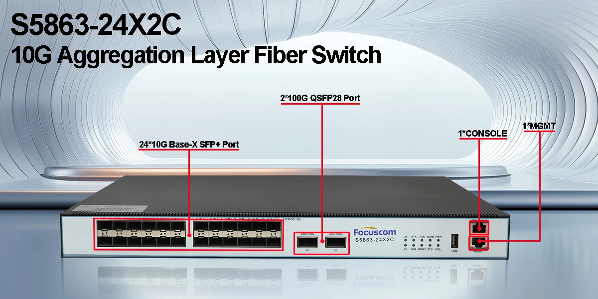 | S5863-24X2C | 24*1000M Base-X SFP/10GE SFP+;2*40G QSFP/2*100G QSFP28 Port |