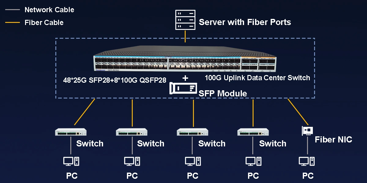 Supports 10G/25G access and 40G/100G uplinks for flexible connectivity.