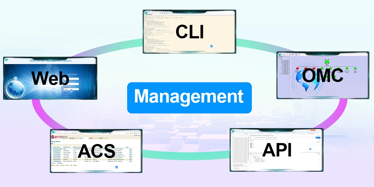 Ø Support OMCI/Web UI/TR069, Telnet/SSH management with CLI commands